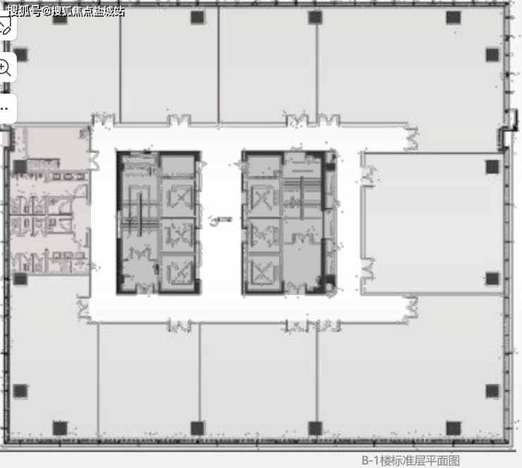 ❹:标准层办公进深都在12 米以上,保证办公的有效使用