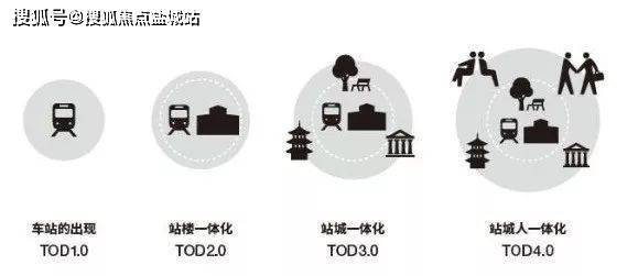 1.0版,TOD就是个车站。2.0版,车站上开始盖楼。3.0版,住宅、购物中心和公园都结合车站开发,即“站城一体化”。
