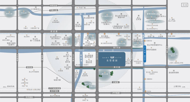 [ 政经双极之核]:昆山市政府、东区行政中心、开发区政府、昆山市政务服务中心、昆山市应急管理局