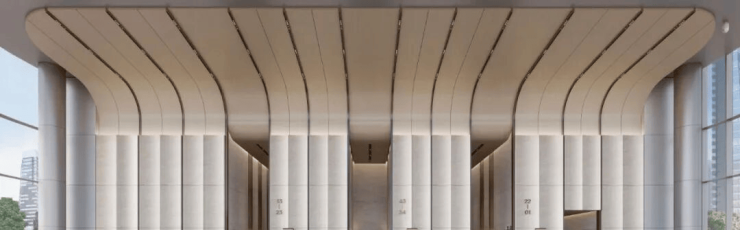 品质精装,奢华体验:大堂、候梯厅、过道、卫生间等公共空间采用石材、金属等材质精装交付