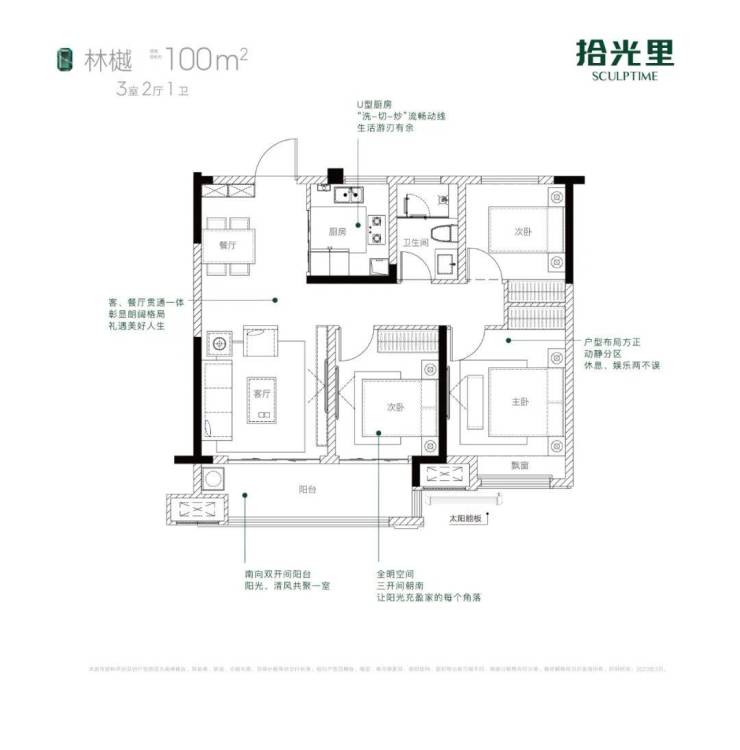 项目打造建筑面积约100㎡的央企三房两厅一卫,三开间朝南,双开间宽境阳台,主卧尊享飘窗设计;餐客厅一体,彰显主人朗阔格局。
