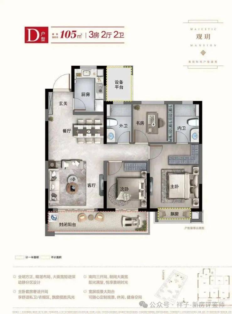 高层 D户型 建筑面积约105㎡ 3房2厅2卫