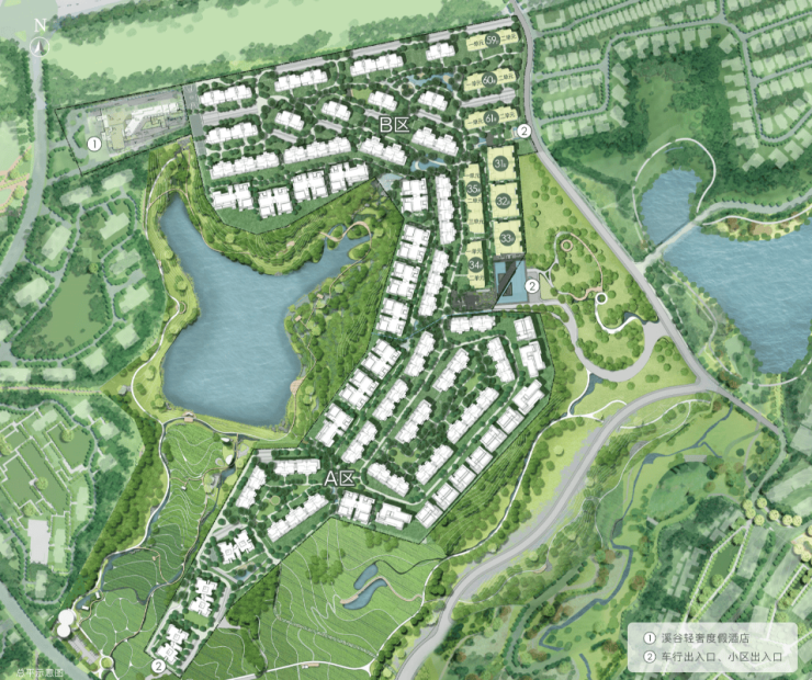 浅丘坡地地势,平原上非常少有,建筑层层退台,楼层退台,拥有绝佳山湖景观视野