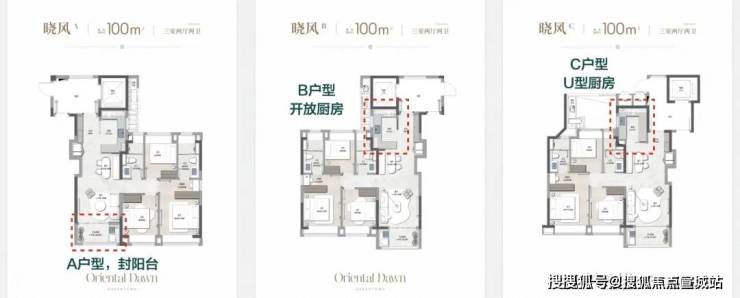 100㎡ 晓风丨三房两厅两卫 四种户型