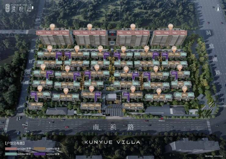 琨悦廷打造仅有289户的纯粹高端低密社区。南侧为115席建面约200㎡、220㎡、233㎡联排别墅;北侧为4栋总高11F,建面约143㎡洋房,仅此174席。