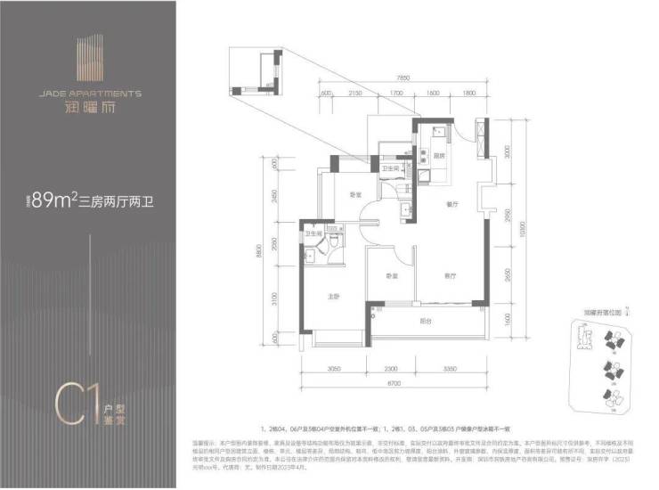 89平三房价格340万