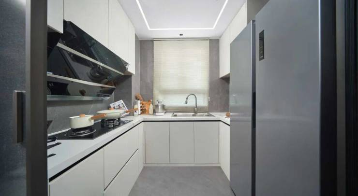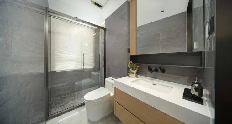 玄关柜创新融入人体智能感应灯系统,合理规划大衣、靴子、雨伞专属收纳区,并内置除臭装置;厨房采用符合人体工学的U型操作动线,吸油烟机与隐藏式冰箱设计兼顾美观与实用;卫生间配置智能马桶,淋浴房采用天然大理石壁龛,顶部安装可拆式扣板吊顶,实现功能与美学的统一。