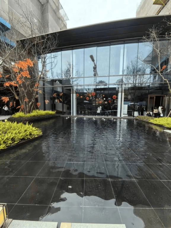 在项目景观设计上由朗道国际景观设计团队操刀(代表作上海融创滨江壹号院、上海万科中兴路一号),从古松江五大浦之一的通波塘上提取灵感,同时以海派水韵为基底,将“循水溯源,浮城鎏金”的设计理念贯穿了整个项目,主打引水入园,让人身临其境、可居可游。