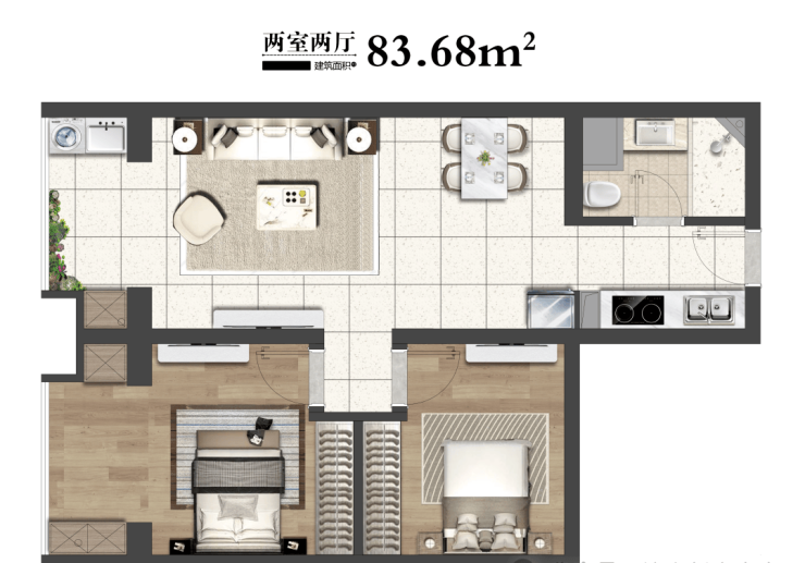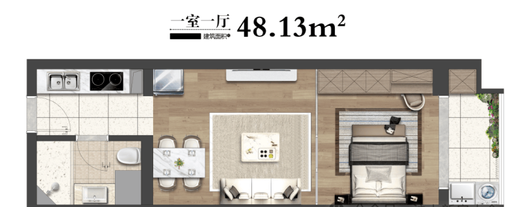 在售面积:平层48㎡一房 /69㎡/83㎡两房