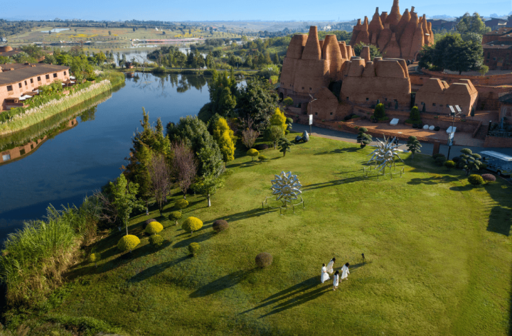 沐心谷康养小镇坐享东风韵国际康养旅游度假区内万花筒艺术馆、国际艺术中心、小镇博物馆、半朵云艺术餐厅、美憬阁精选酒店、牛哆啰音乐农庄等艺术建筑群,满足一站式旅居需求,漫享艺术康养生活。
