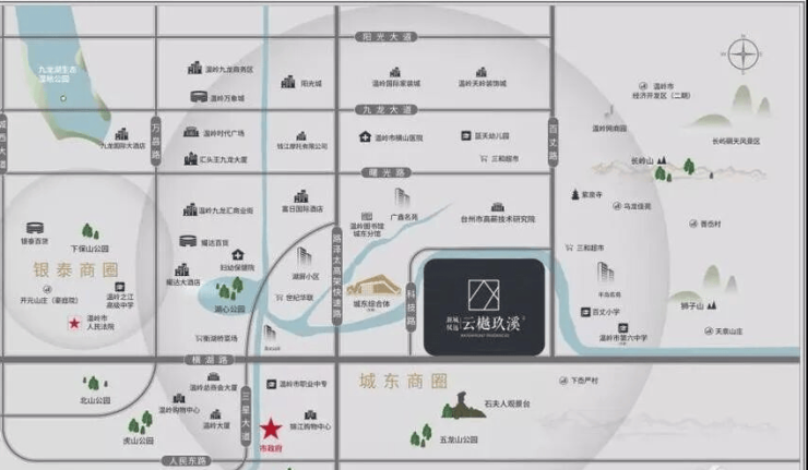 地段优势:位于温岭城东核心地段,毗邻总建筑面积约12万方的城东综合体(在建),与五龙山公园、五龙山体育公园等自然景观相邻,步行可达万昌路商圈,交通便利,路泽太高架快速路和228国道提升区域通达性。