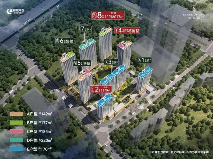 【户型面积】约149㎡、170㎡、177㎡、185㎡、220㎡