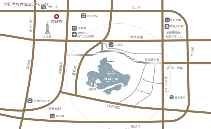 琴湖小镇地处常熟中心,承接新老城区,西眺虞山、尚湖,南邻昆承湖,占据海虞路、新世纪大道两大黄金发展轴,富集醇熟资源。