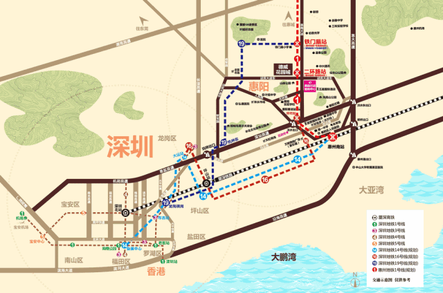 出门即达惠州1号线叶挺站(规划中),无缝接驳深圳14号线。毗邻惠州南站,承载厦深、深汕高铁(建设中),1站即达深圳。家门口(迎宾大道),连接深汕、惠大、长深、武深4大高速,四通八达。四铁双轨多枢纽立体交通,实现半小时深莞惠同城。