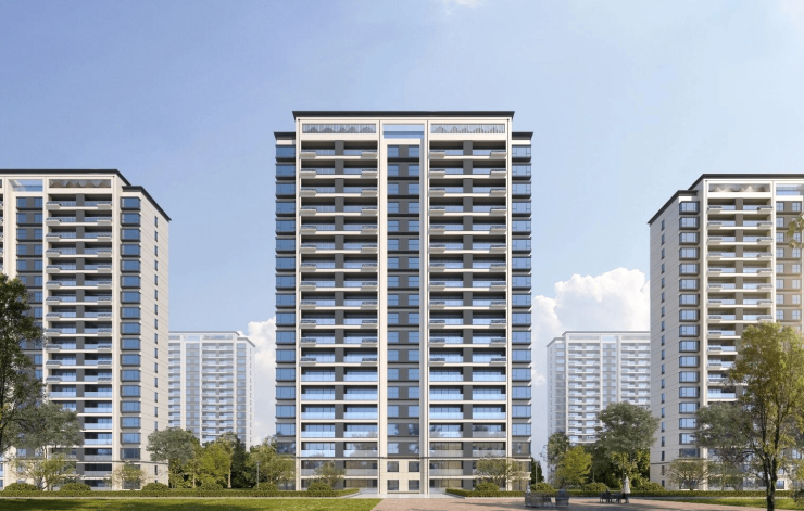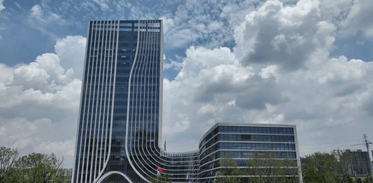 【建筑风格】:现代简约中式风格,以浅色墙面和纯净的玻璃面组合,整体形象高端大气;