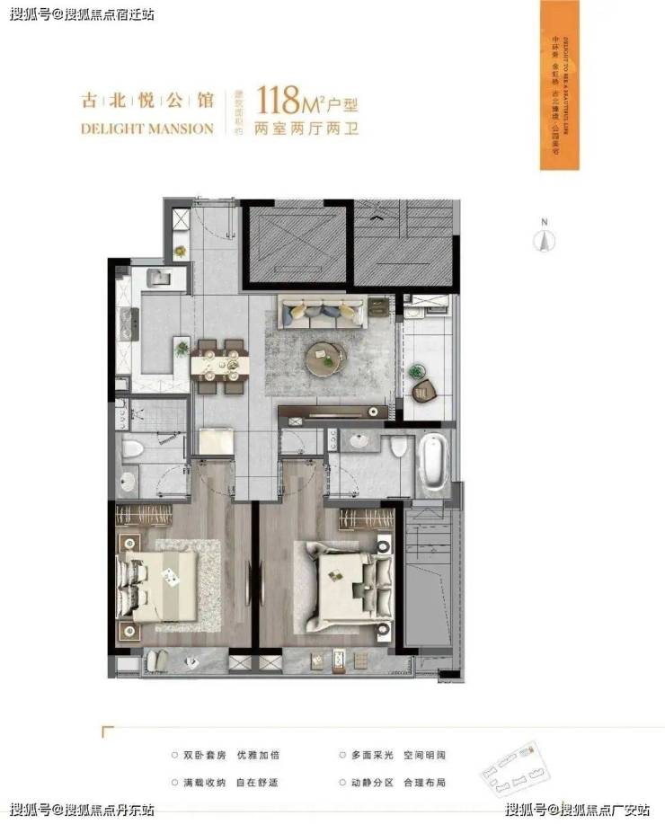 建面约118㎡奢雅两居均价约8.8万/㎡总价仅约430万起高标准精装交付
