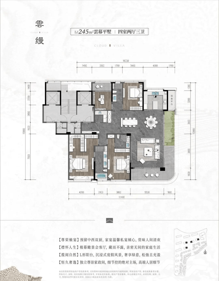 【主力户型】:小高层143-245㎡三至四房;合院290-556㎡