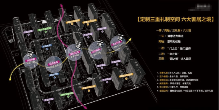 项目专门打造了一环、二轴、三进三礼,形成定制三重礼制空间六大奢居之境,本着以人为本的设计理念,营造一种宁静雅致的体验感观,尽享尊贵大气。
