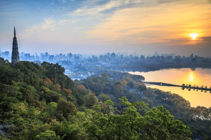 窗外近看西湖宝石山、武林广场的房子