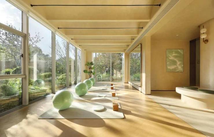 约13000㎡景观中庭,约12万㎡银湖公园,内外双园林体验。由安道设计担纲景观设计,花园融入了酒店度假风理念,搭配4座向公区打开的童玩、疗愈、文化、健身等主题架空层,营造出高端住宅追求的松弛度假感。