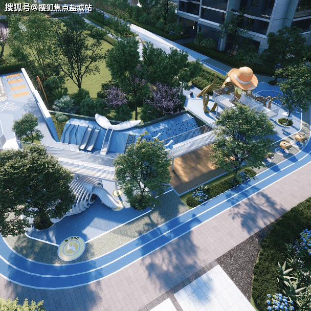 一条约600米的环形跑道,可以称之为“江风海韵活力环”,当然你也可以在这里漫步或快走,途经之处,皆是热带风景。这条跑道上,绘有数字标识,以颜色区分出热身起跑区、加油站、休息区等,串联起儿童、老年、青年活动空间。丰富的运动类型,覆盖了全龄段的需求,“嵌入“在景观里,简直是全龄业主们的“全民训练场“,随时都让“自律给你自由“!