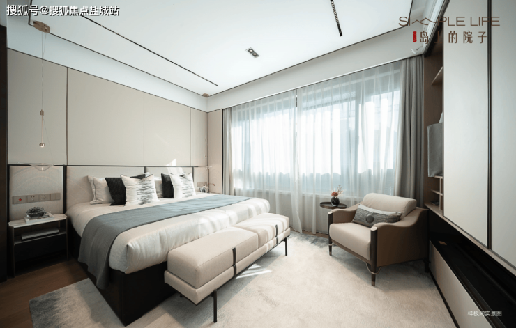 主卧也颇具亮点,面宽达到约3.5米,飘窗的尺度很给力,进一步扩大了使用空间。