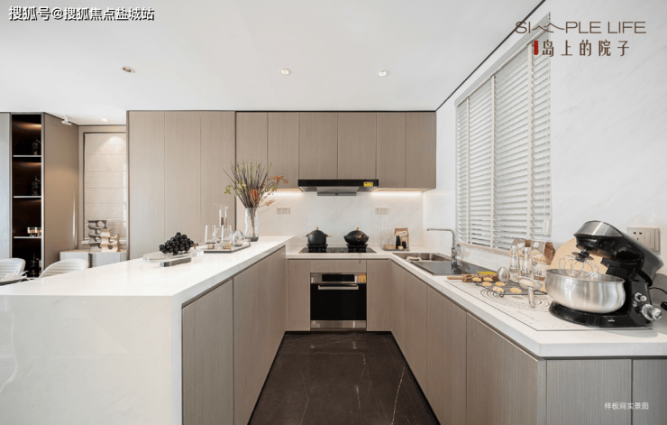厨房是L型布局,有意思的是在侧边做了一个岛台,这个设计在约75㎡的户型中非常少见。