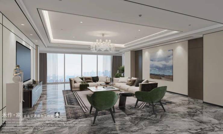 约465㎡户型的公区,采光面加起来近28米,总面积达到了约150㎡,已接近一套200㎡住宅的套内面积,尺度远超同级产品。像汤臣一品那套最大的597㎡,客厅也就120㎡。