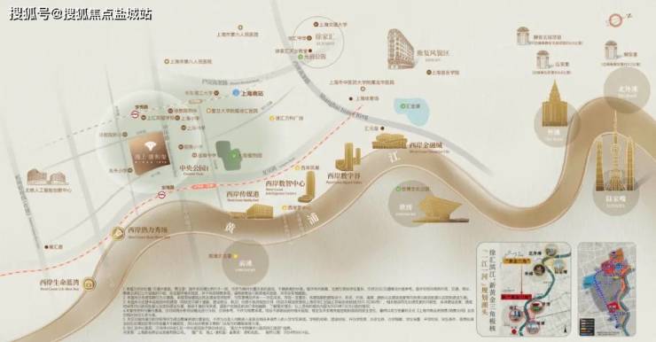 上海沿江而兴,地产开发沿江由北向南辐射发展。