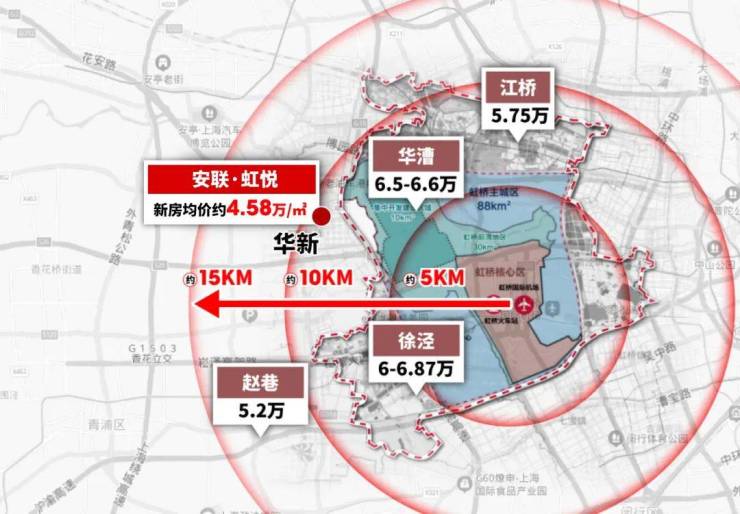 当下说到大虹桥,很多人会联想到徐泾或者华漕,事实上华新同样是大虹桥的一线辐射板块,房价却比徐泾和华漕要低近2万/㎡!