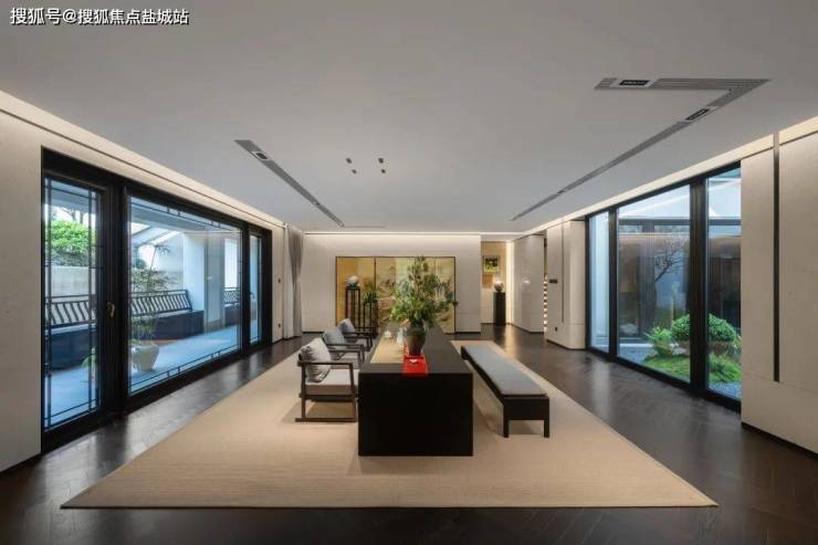 它让每个功能区既独立切分,又萦绕环通,堪称神来之笔。首先,它为这东方院落注入了自然的灵魂:每个房间,朝内永远有一片落地玻璃框出的园景。