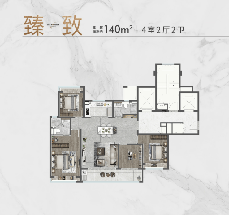 尤其是当下正在热销的建面约140㎡大四房户型,完美平衡了尺度感和功能性,更是被众多媒体称之为“神户型”。