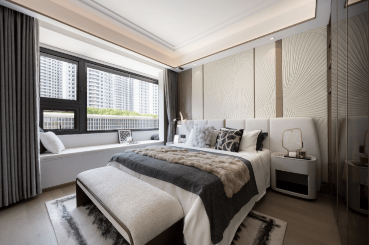 不仅是主卧,北向次卧与南向次卧套件,更是空间尺度的越级提升,再加上全屋飘窗,又进一步拓宽房间的空间感。
