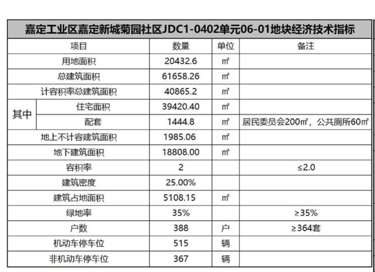 06-01地块:总建筑面积:61658.26㎡,其中住宅面积39420.4㎡,容积率:2;绿地率:35%;住宅户数:388套