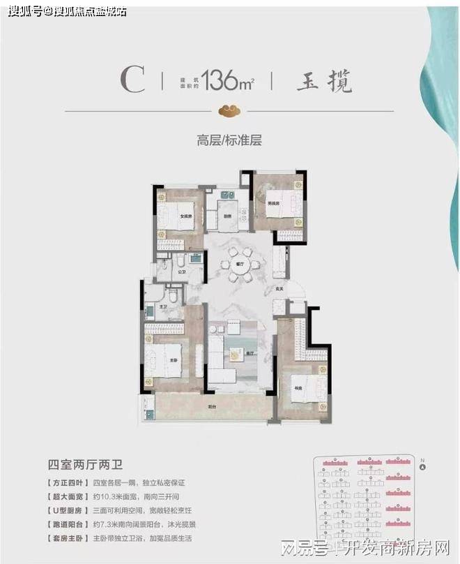 亮点4: 超高得房率,经典四叶草户型