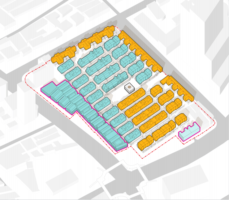 由于项目“历史风貌街区”的特殊属性,区域将沿袭“总弄-支弄”的里弄风貌肌理,现有的历史建筑实施“留改拆”方式,可采用规划保留或拆除复建方式予以更新,建筑立面不宜改变,保留历史特色构建。