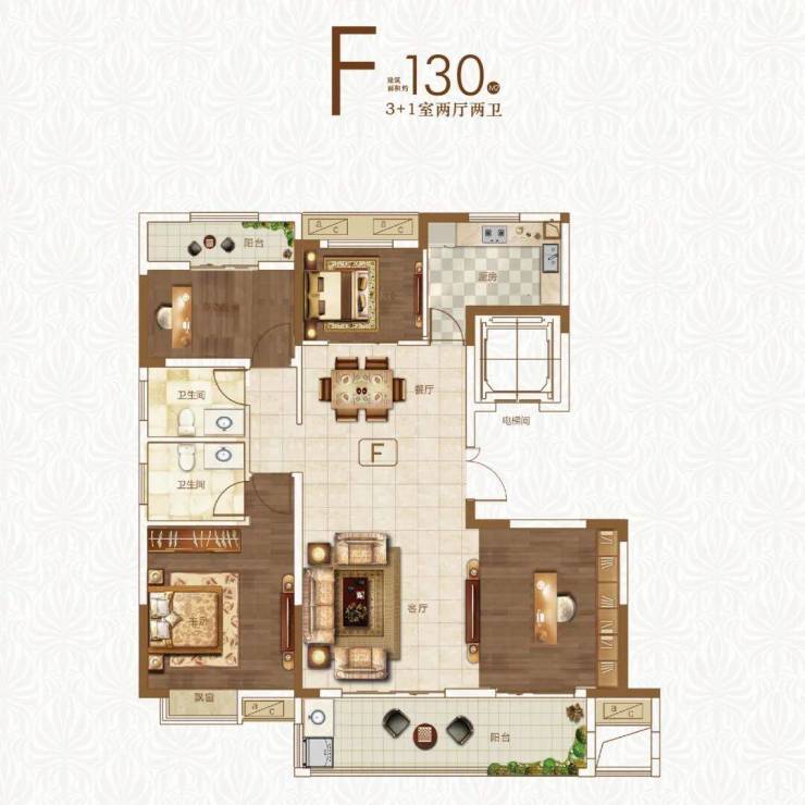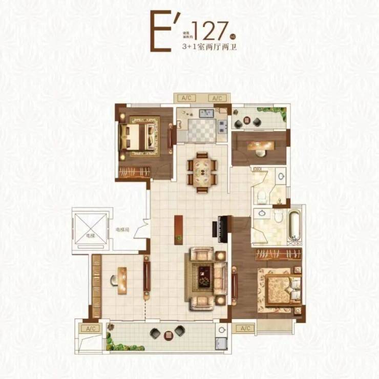 项目主力户型为建面约127㎡户型,“3+1”的空间设计,灵活多变,无论是二人世界或者二胎时代,可满足需求的多面性;南向双阳台,奢阔大面宽,给予生活更多可能。