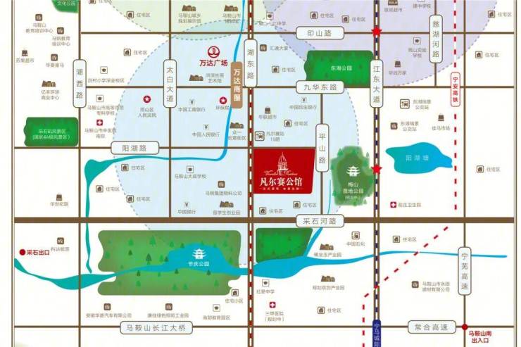 交通:项目位于城市主干道湖东南路、采石河路附近,毗邻正在建设中的高铁南站和宁马城际铁路,便于交通出行。同时,该地处南京都会圈内,全国高铁网络覆盖,交通非常便利。
