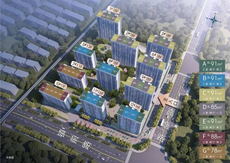 建筑面积约78-91㎡三房,大气方正开间朝南布局,明朗瞰景阳台,引阳光入室,开阔主卧套房,舒适惬意。