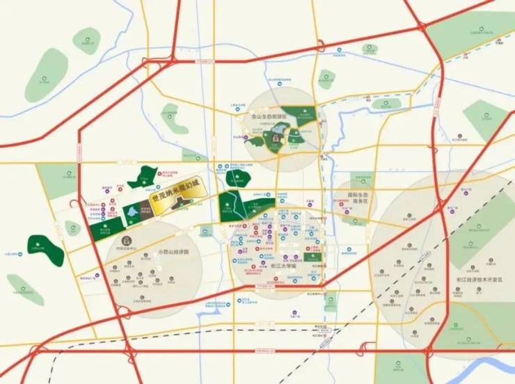 七大生态公园环绕:辰山植物园、广富林水下博物馆、天马山森林公园、佘山国家森林公园、月湖雕塑公园、横山国家森林公园、小昆山公园,周边森林覆盖率高达86%,每立方厘米负氧离子含量过万