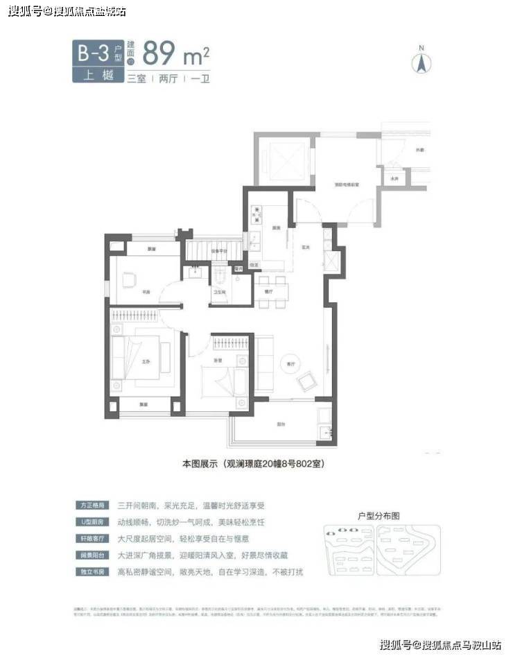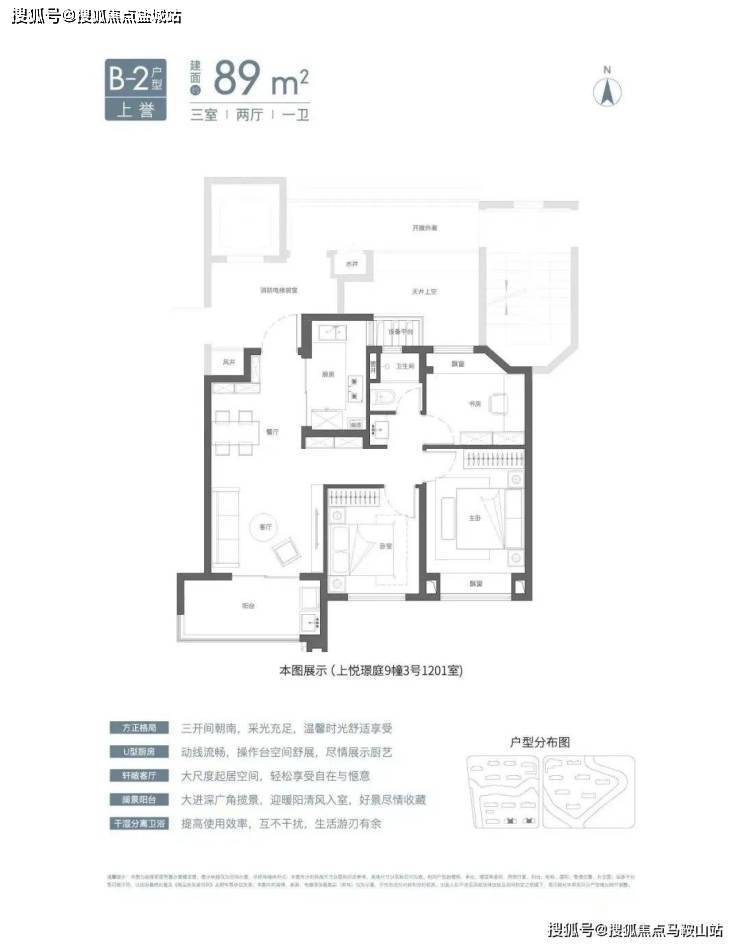 尺度震撼:宽厅面宽约5.5米,3.5开间面宽共约11.5米,再加上约8㎡的阳台,使得整个家庭的公共区域尺度感十足、功能也更加灵活多变。全屋六飘窗:大大延展了使用空间。三卧空间相对均衡:能更好满足各家庭成员空间使用需求。