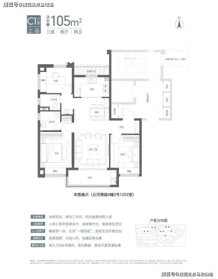 建面约105㎡3房2卫有宽厅和竖厅两种风格,其中宽厅户型好评度颇高。
