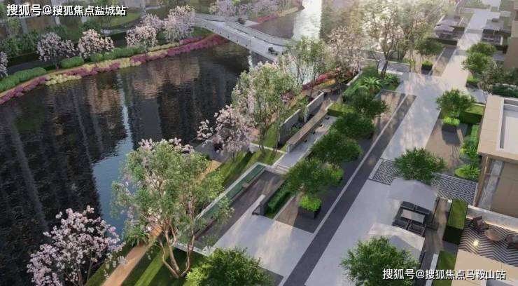 社区内Y型黄金水道已实景呈现,围绕滨河打造下沉式客厅,将会客与赏景衔接,延伸家庭居住空间。