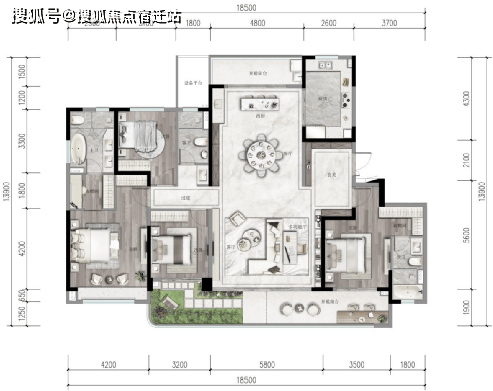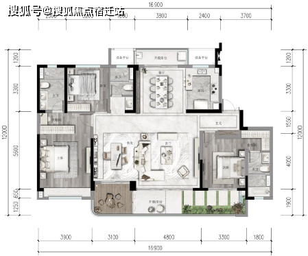 185㎡户型设计整体采取LDKB一体化格局,3.5面宽阳台,营造墅居范本。南向飘窗连通270°瞰景双阳台,附赠超大花池,行政级双主卧套房,双台盆卫浴搭配阔绰衣帽空间。