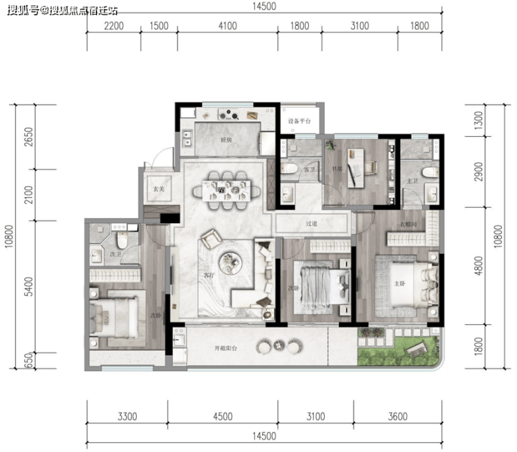 155㎡户型设计方正,约14.5m面宽,市场稀缺的南向4开间,入户功能储藏玄关,细节营造居家氛围。观景阳台大面积全玻璃,视野开阔。精奢舒居双套卧,主次卧皆配独立卫浴。