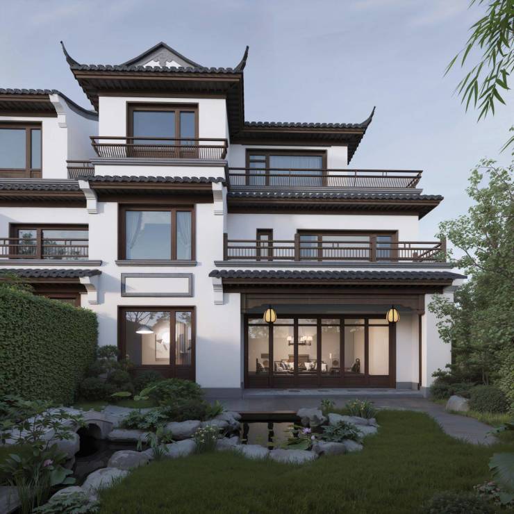 基于约 1.4 低容积率,因地制宜构筑三层建筑形制的 30 席瑧稀合院,户型 185-244m2,一线观揽青山湖。圆满临安高阶人 士的院落收藏理想