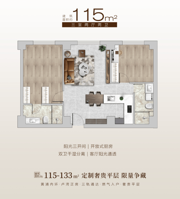 目前在售户型:约115-133m²,敬请期待!户型图赏鉴: