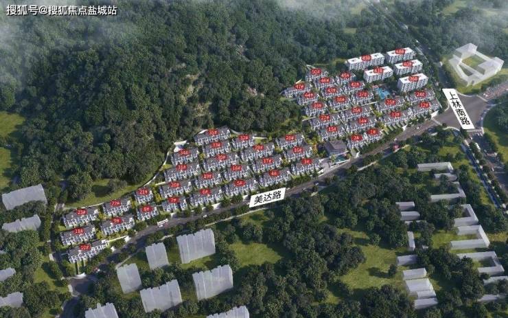 从空中俯视,整个小区院落错落有致,翩然伏于青山绿树间。
