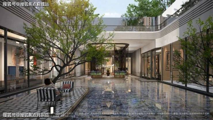 结源于东方园林艺术的庭院设计灵感,约400㎡下沉水院聚焦于天光茶室,通过打通首层水景池底引入自然天光,浪漫解锁生活的每一种归处。