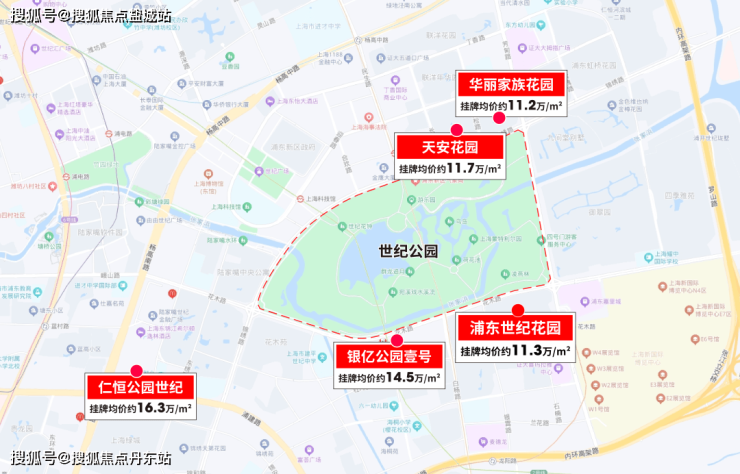 就拿世纪公园来说,以这座公园为中心,周边的房龄在20年以上的二手房挂牌均价起码都在约11万+/㎡。